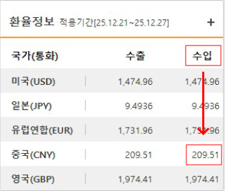 12월 4주차 고시환율 안내 입니다.
