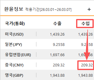 ** 관 세 청 고시환율 : 209.32원 (지난주 : 209.6원)